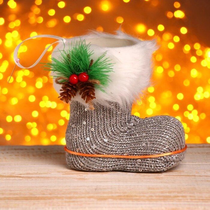 Конфетница "Сапожок", с еловой веткой, цвета МИКС