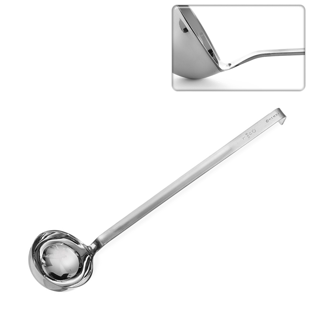 Половник изготовлен из одного куска стали без пайки и загибов.