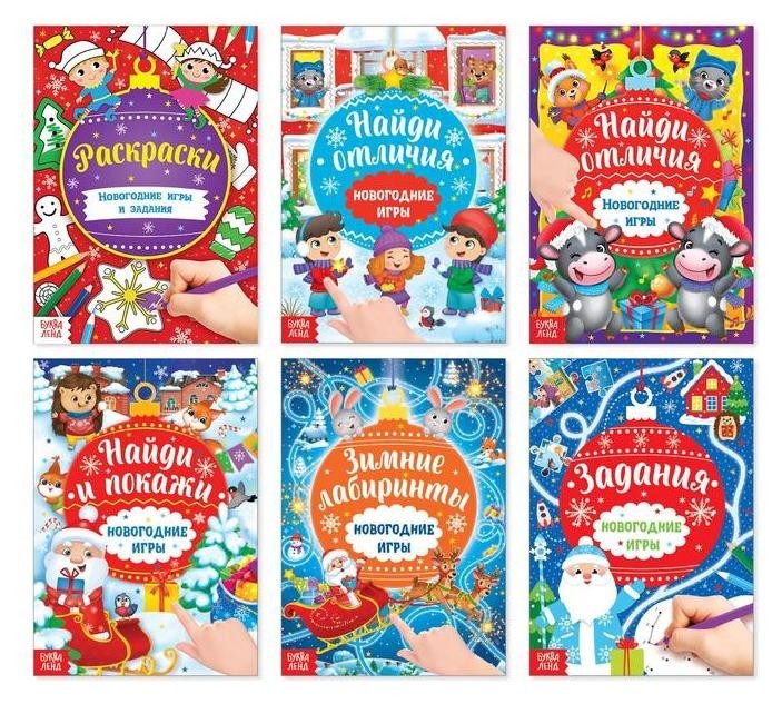 Книги с заданиями набор «Новогодние игры», 6 шт. по 16 стр.