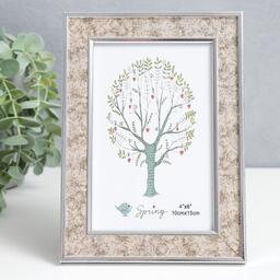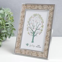 Фоторамка пластик 10х15 см "Мрамор беж" двойная серебристая обводка 18х13 см