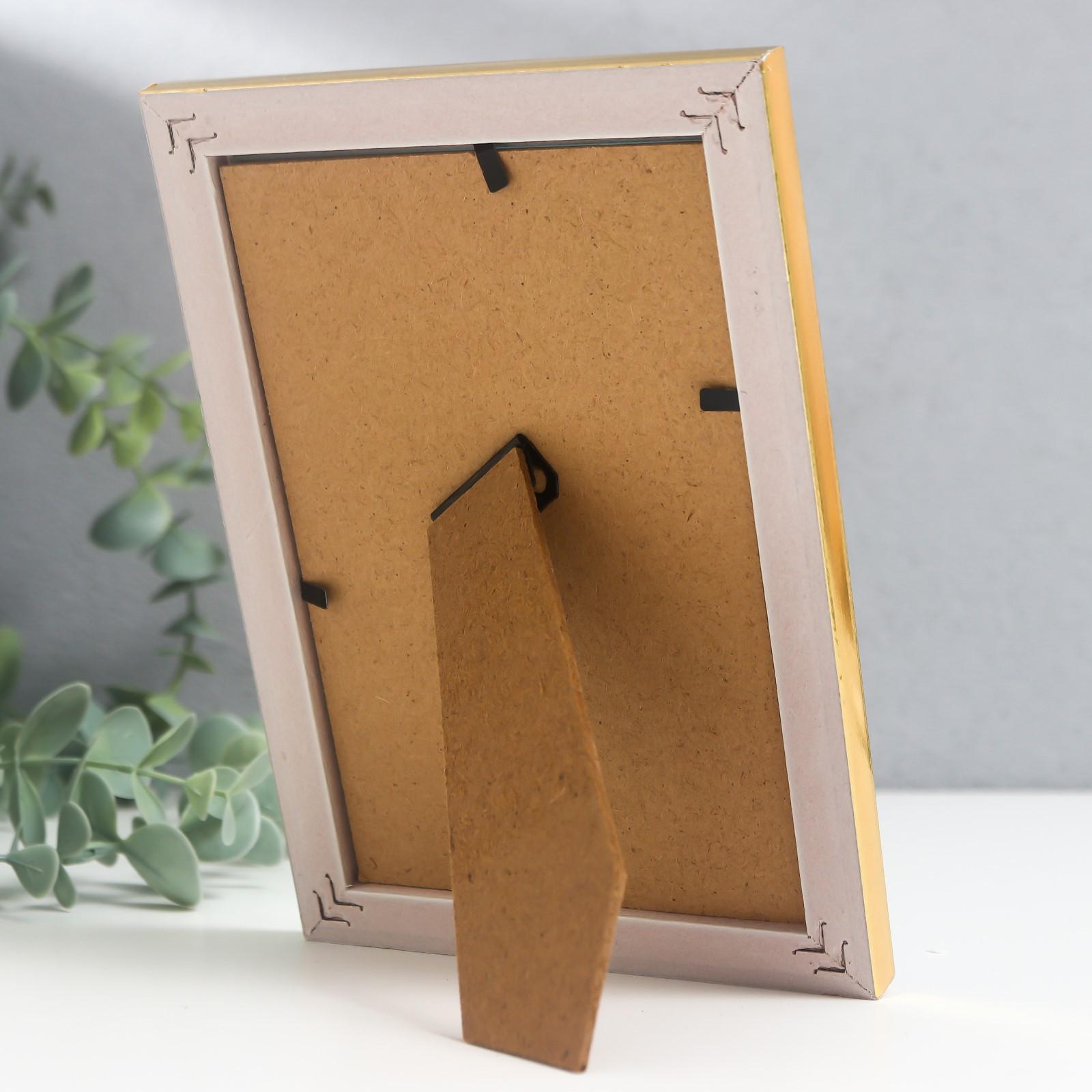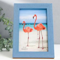 Фоторамка пластик 10х15 см "Лён ярко-голубой" золотая обводка 17,5х12,5 см