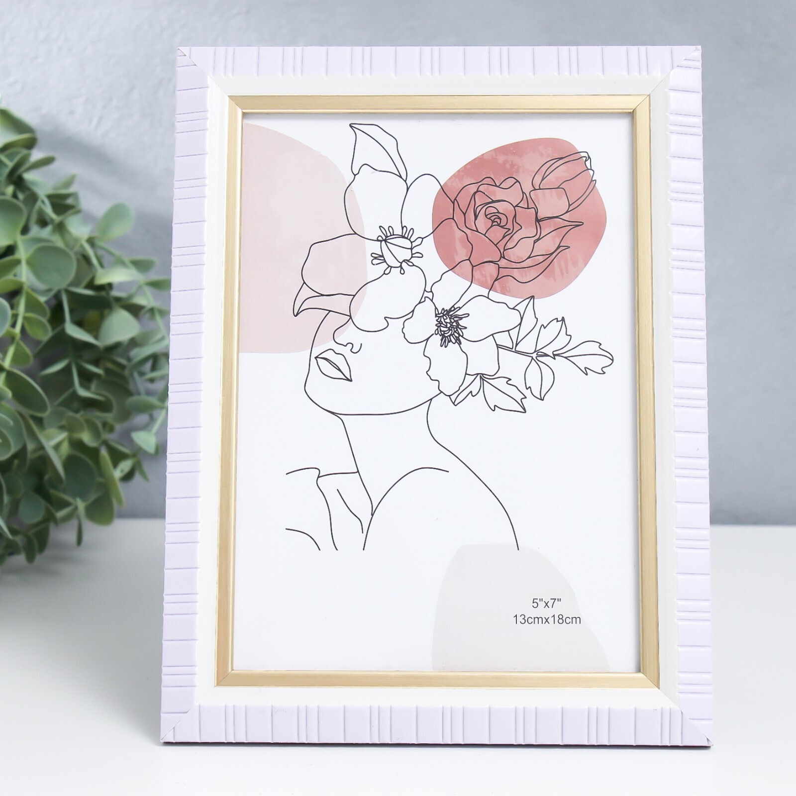 Фоторамка пластик 13х18 см "Чёрточки" белая 20,1х15,4 см