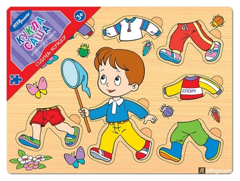 Игра "Одень куклу. Кукла Саша" - развивающая игра из дерева, в которой дети смогут по-разному комбинировать одежду у куклы.