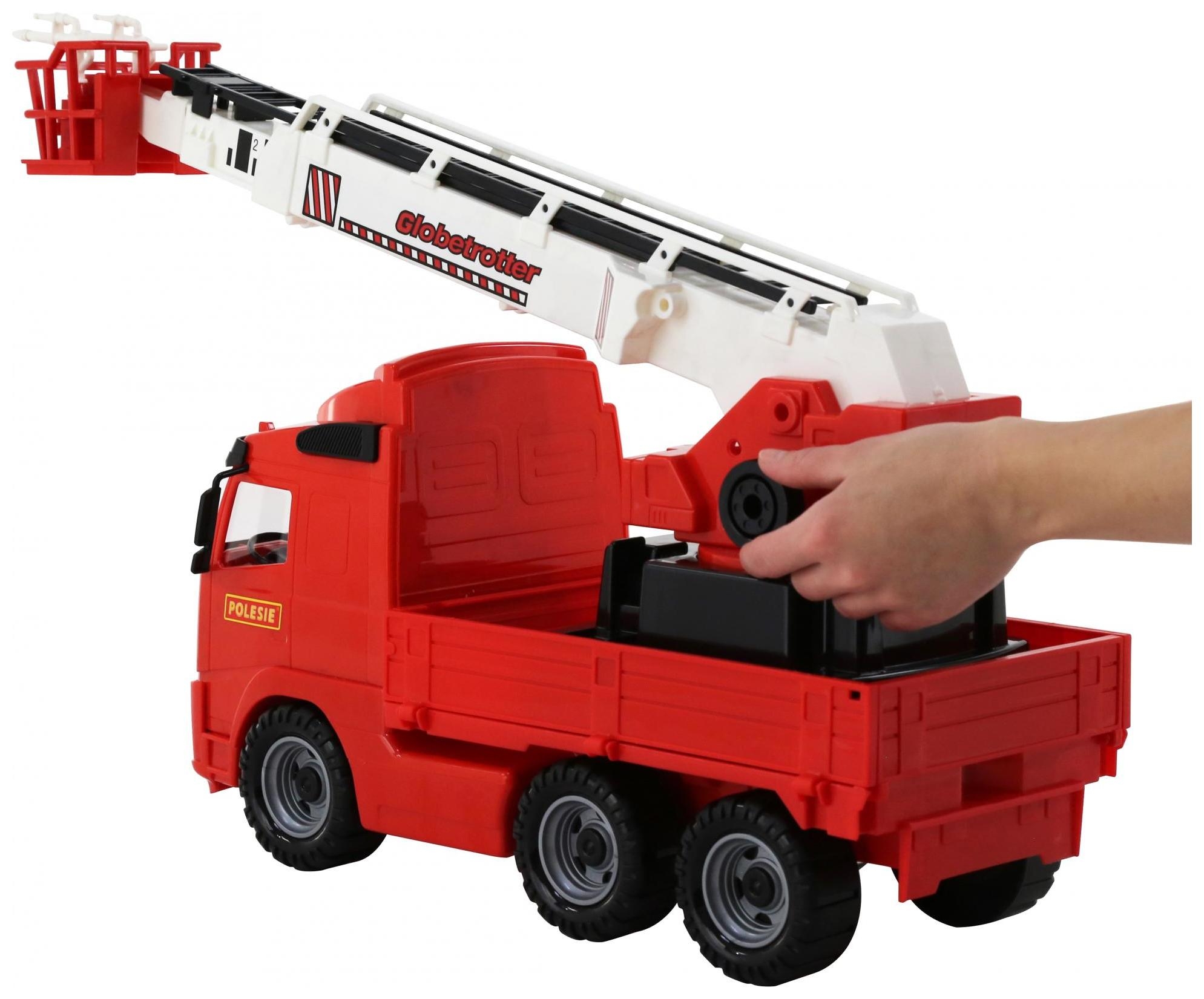Пожарная машинка от компании Полесье порадует ребенка и позволит поиграть в разные сюжетно-ролевые игры. У машинки есть телескопическая кабина, которая позволяет пожарному проникнуть на верхние этажи здания и спасти жителей горящего дома. У пожарной машины Полесье вместительная кабина, куда можно посадить игрушечных водителей.
