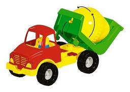 Игрушечная бетономешалка станет достойным помощником во время импровизированной стройки. Конструкция машины позволяет засыпать внутрь "бочки" песок, осуществлять вращение емкости, имитируя деятельность настояшей бетономешалки, а затем высыпать материалы в необходимом месте. Машина обладает большими колесами, которые позволяют ей проезжать по различным поверхностям, а также симпатичными элементами дизайна, вроде человечка-водителя в кабине.
