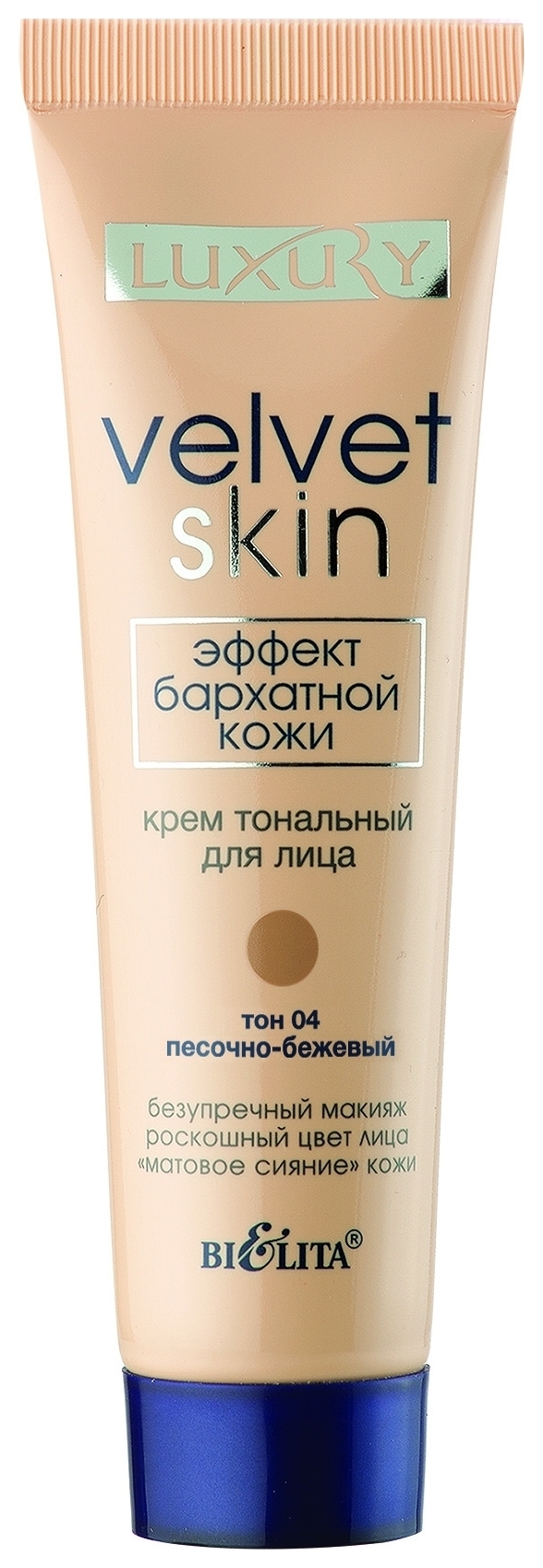 Крем для лица тональный Эффект бархатной кожи Luxury, Тон 04 Песочно-бежевый