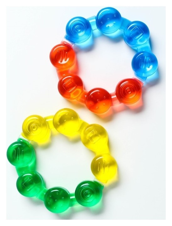 Специальная жидкость внутри поможет снизить воспаление в ротовой полости и снять болевые ощущения. Для охлаждения прорезывателя поместите его в холодильник на 10‒15 минут. Форма ручки и размеры разработаны специально для детской ладони, поэтому малышу будет удобно её держать. Рельефная структура на поверхности изделия и его дополнительных элементов будет способствовать развитию мелкой моторики, а яркие цвета — формированию визуального восприятия мира.