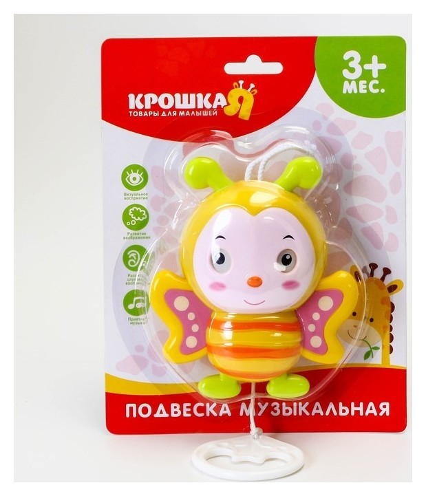 Подвеска развивает воображения, визуальное и слуховое восприятие малыша. Игрушка имеет контрастные цвета, издает звук и двигается, тем самым привлекая внимание ребёнка.
