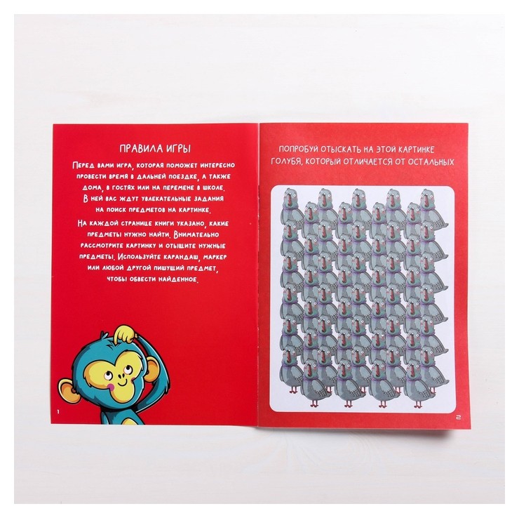 «Найди меня» — ребёнку предстоит выполнить задания на внимательность. Мы подготовили красочные иллюстрации с большим количеством элементов. Среди них ребёнку нужно найти персонажей или предметы, указанные в задании. Сложность повышается с каждой страницей.