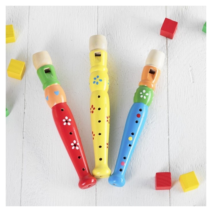 Дудочка — это первый шаг ребёнка в мире музыки. А ещё это красивый и яркий инструмент, который порадует любого малыша. Играть на нём очень просто: нужно дуть в отверстие и прикрывать пальцами дырочки, которые расположены в верхней части.