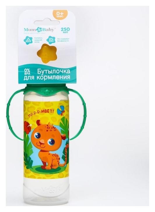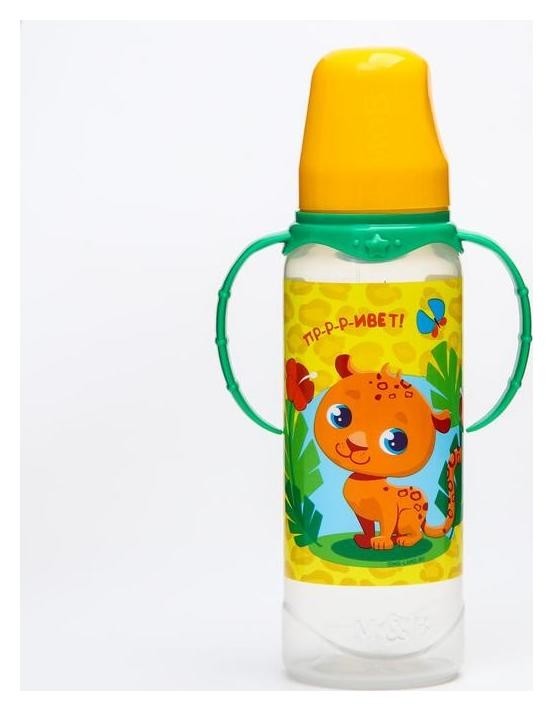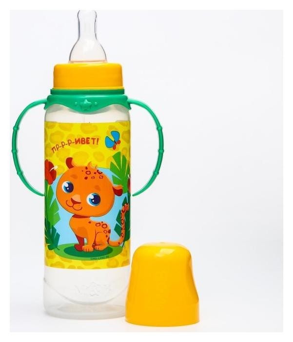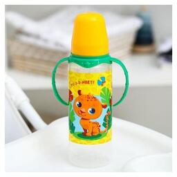 Бутылочка для кормления Леопард, 250 мл цилиндр, с ручками