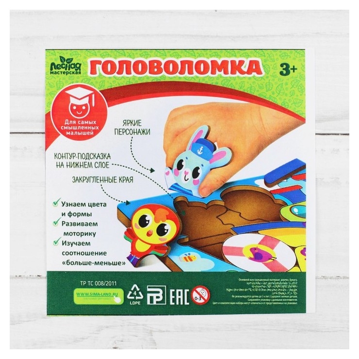 Параметры: Материал: Дерево Вид головоломки: Пазлы и мозаика Возраст: От 3 лет.