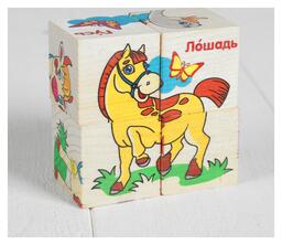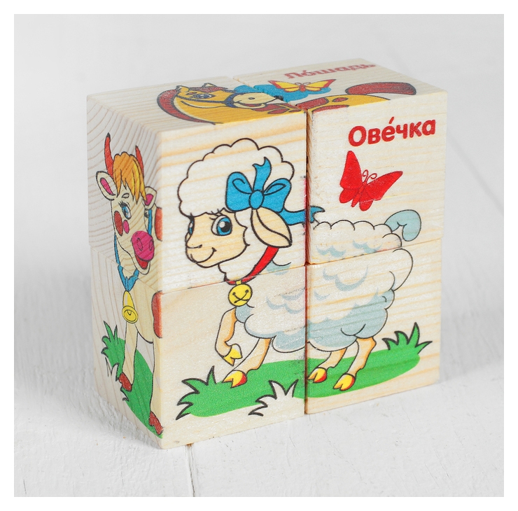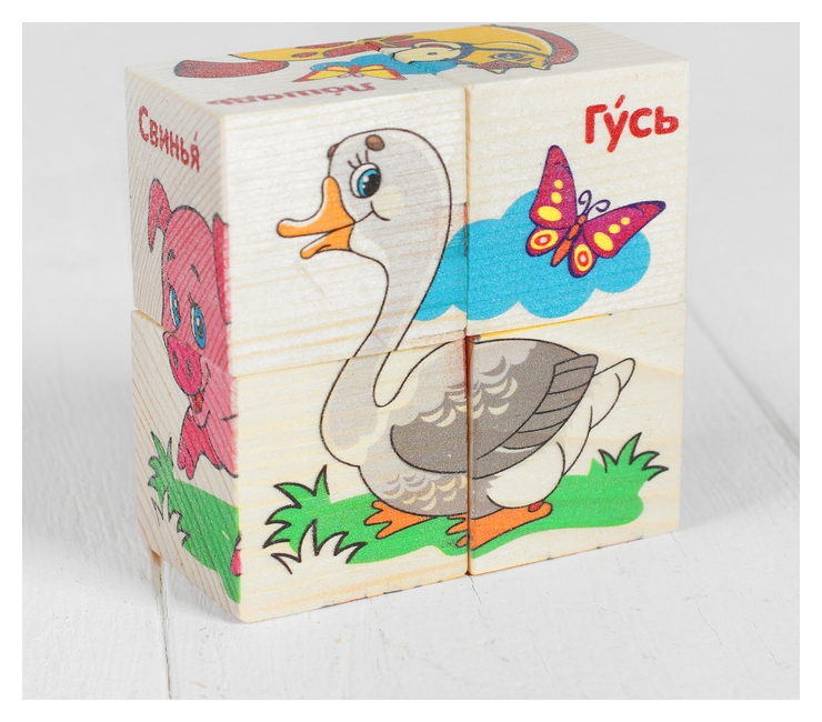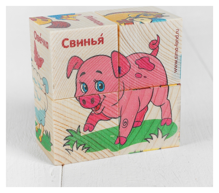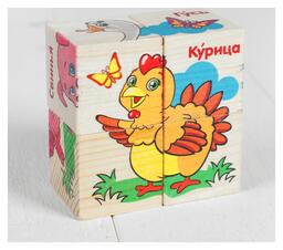 Кубики деревянные "Животные фермы" набор 4 шт.