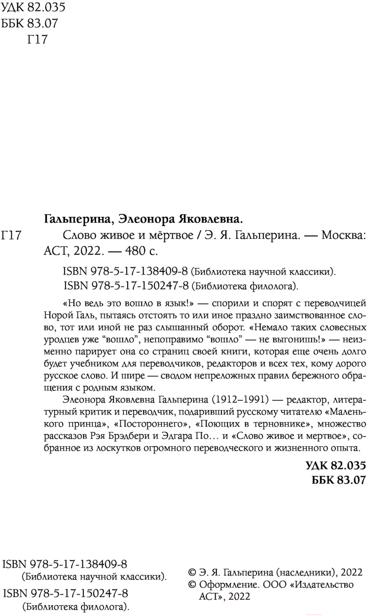 Книга АСТ Слово живое и мертвое / 9785171502478 (Галь Н.)