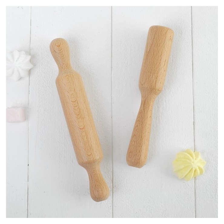 Размеры Доска: 22 × 14 × 1 см. Длина скалки: 20 см. Длина толкушки: 17 см.