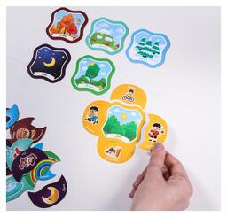 Благодаря этой простой игре малыш научится группировать карточки по общему признаку и будет составлять из них логические цепочки. А удобная форма пазла поможет развить мелкую моторику.