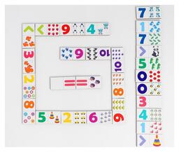 Участвуют от 2 до 4 человек. Если игроков двое, они получают по 7 фишек, если больше — по 5. Начинайте выкладывать элементы с дублей, а затем по очереди все участники должны добавлять с любого края совпадающие по картинке фишки. Если подходящих не оказалось, дополнительная берётся из «банка», пока не найдётся нужная, или пропускается ход. Побеждает тот, кто быстрее всех выложит все свои фишки.