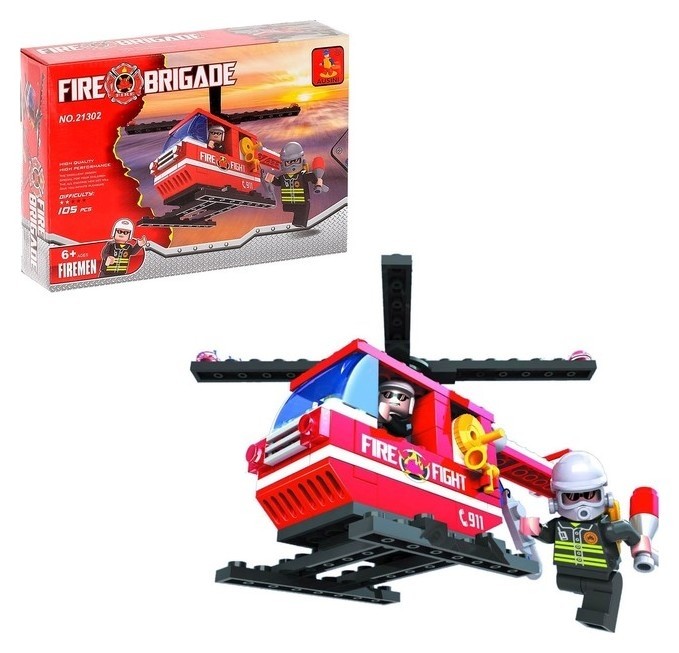 Конструктор пожарная бригада «Вертолёт», 105 деталей
