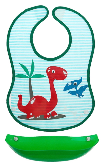 Нагрудник со съёмным карманом «Динозавры», непромокаемый, на липучке