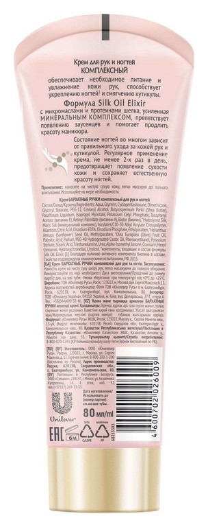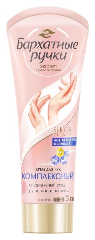 Действие крема усилено формулой Silk oil elixir. Микро-масла восстанавливают клетки кожи, и в комплексе с протеинами шелка делают ее мягкой и нежной. Красота и нежность Ваших рук в каждом прикосновении!