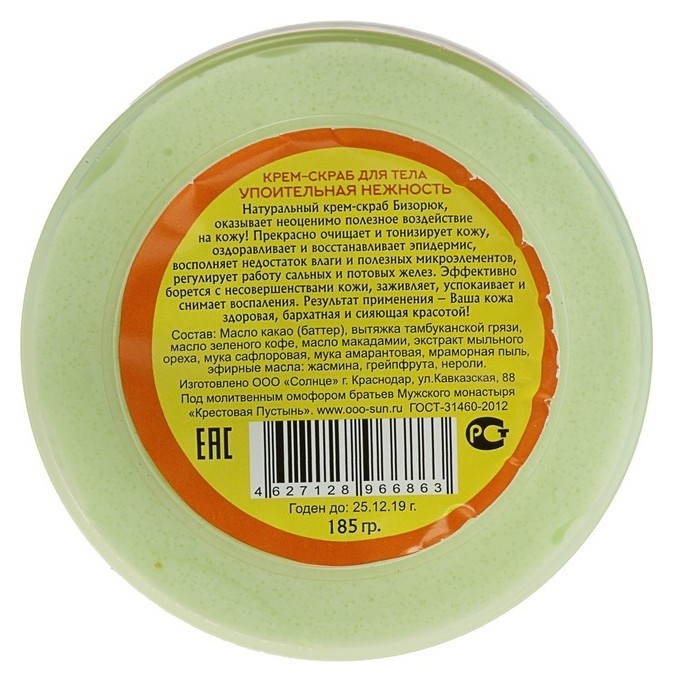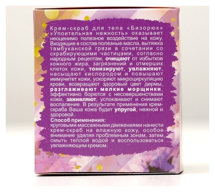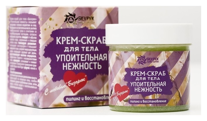 Натуральный крем-скраб «Бизорюк» очищает и тонизирует кожу. Оздоравливает и восстанавливает эпидермис, восполняет недостаток влаги и полезных микроэлементов, регулирует работу сальных и потовых желёз. Эффективно борется с несовершенствами кожи, снимает воспаление.