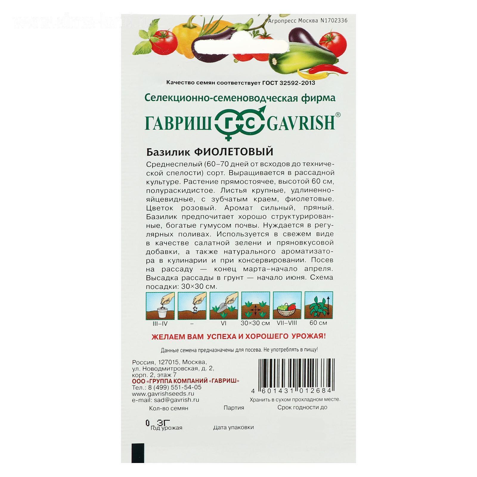 Среднеспелый (60-70 дней от всходов до технической спелости) сорт. Выращивается в рассадной культуре. Посев на рассаду конец марта – начало апреля. Высадка рассады в грунт начало июня. Схема посадки 30х30см. Растение прямостоячее, высотой 60 см, полураскидистое. Листья крупные, удлиненно-яйцевидные, с зубчатым краем, темно-зеленый с сильным антоцианом. Цветок розовый. Аромат сильный, пряный. Базилик предпочитает хорошо структурированные, богатые гумусом почвы. Нуждается в регулярных поливах. Используется в свежем виде в качестве салатной зелени и пряно вкусовой добавки, а также натурального ароматизатора в кулинарии и при консервировании.