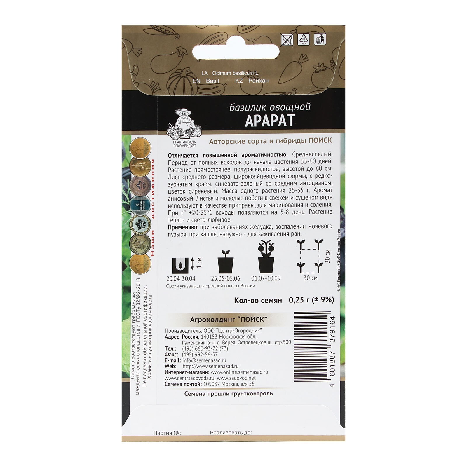 Семена Базилик "овощной Арарат" 0,25 г