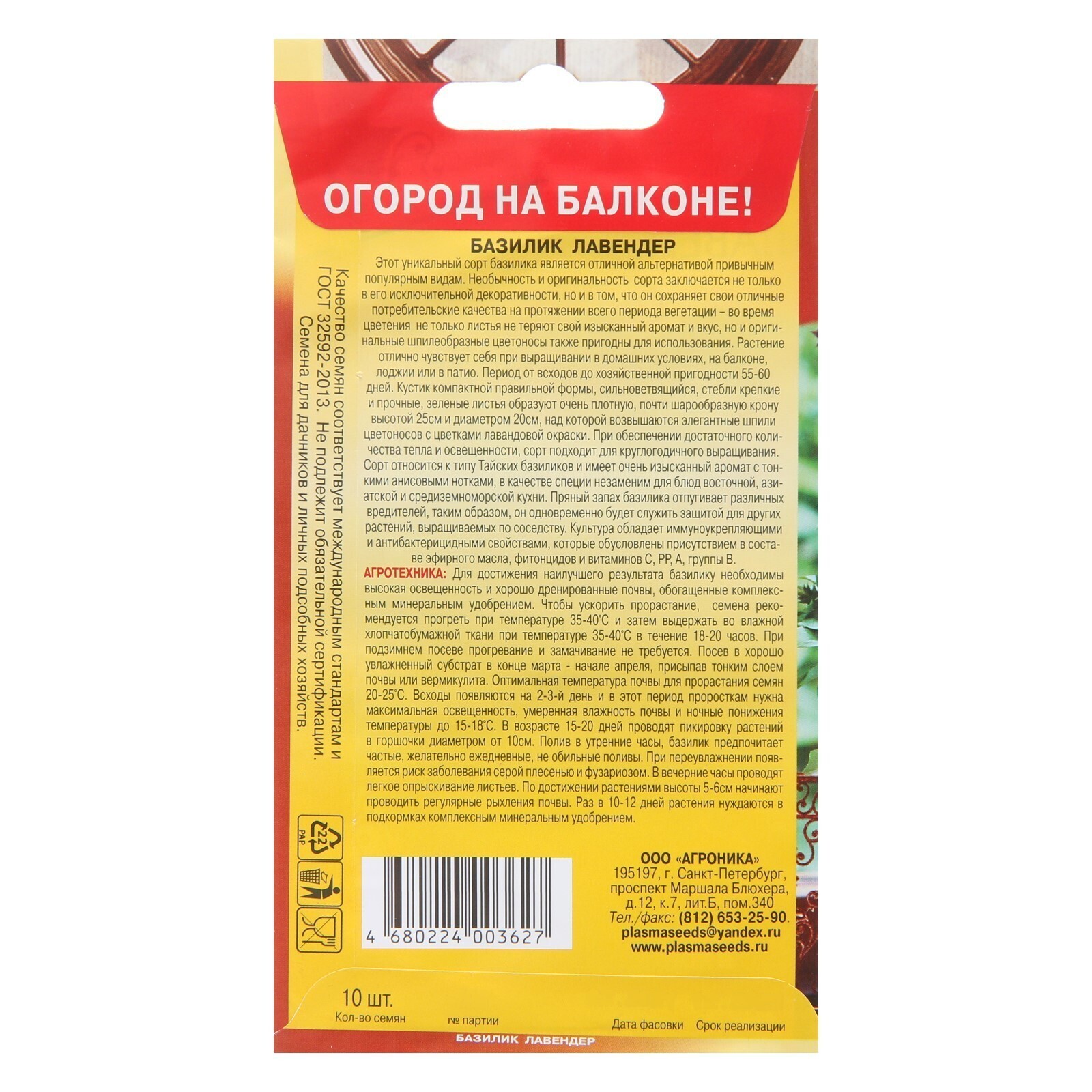 Этот уникальный сорт базилика является отличной альтернативой привычным популярным видам. Необычность и оригинальность сорта заключается не только в его исключительной декоративности, но и в том, что он сохраняет свои отличные потребительские качества на протяжении всего периода вегетации – во время цветения не только листья не теряют свой изысканный аромат и вкус, но и оригинальные шпилеобразные цветоносы также пригодны для использования. Растение отлично чувствует себя при выращивании в домашних условиях, на балконе, лоджии или в патио. Период от всходов до хозяйственной пригодности 55-60 дней. Кустик компактной правильной формы, сильноветвящийся, стебли крепкие и прочные, зеленые листья образуют очень плотную, почти шарообразную крону высотой 25см и диаметром 20см, над которой возвышаются элегантные шпили цветоносов с цветками лавандовой окраски. При обеспечении достаточного количества тепла и освещенности, сорт подходит для круглогодичного выращивания. Сорт относится к типу Тайских базиликов и имеет очень изысканный аромат с тонкими анисовыми нотками, в качестве специи незаменим для блюд восточной, азиатской и средиземноморской кухни. Пряный запах базилика отпугивает различных вредителей, таким образом, он одновременно будет служить защитой для других растений, выращиваемых по соседству. Культура обладает иммуноукрепляющими и антибактерицидными свойствами, которые обусловлены присутствием в составе эфирного масла, фитонцидов и витаминов С, РР, А, группы В.