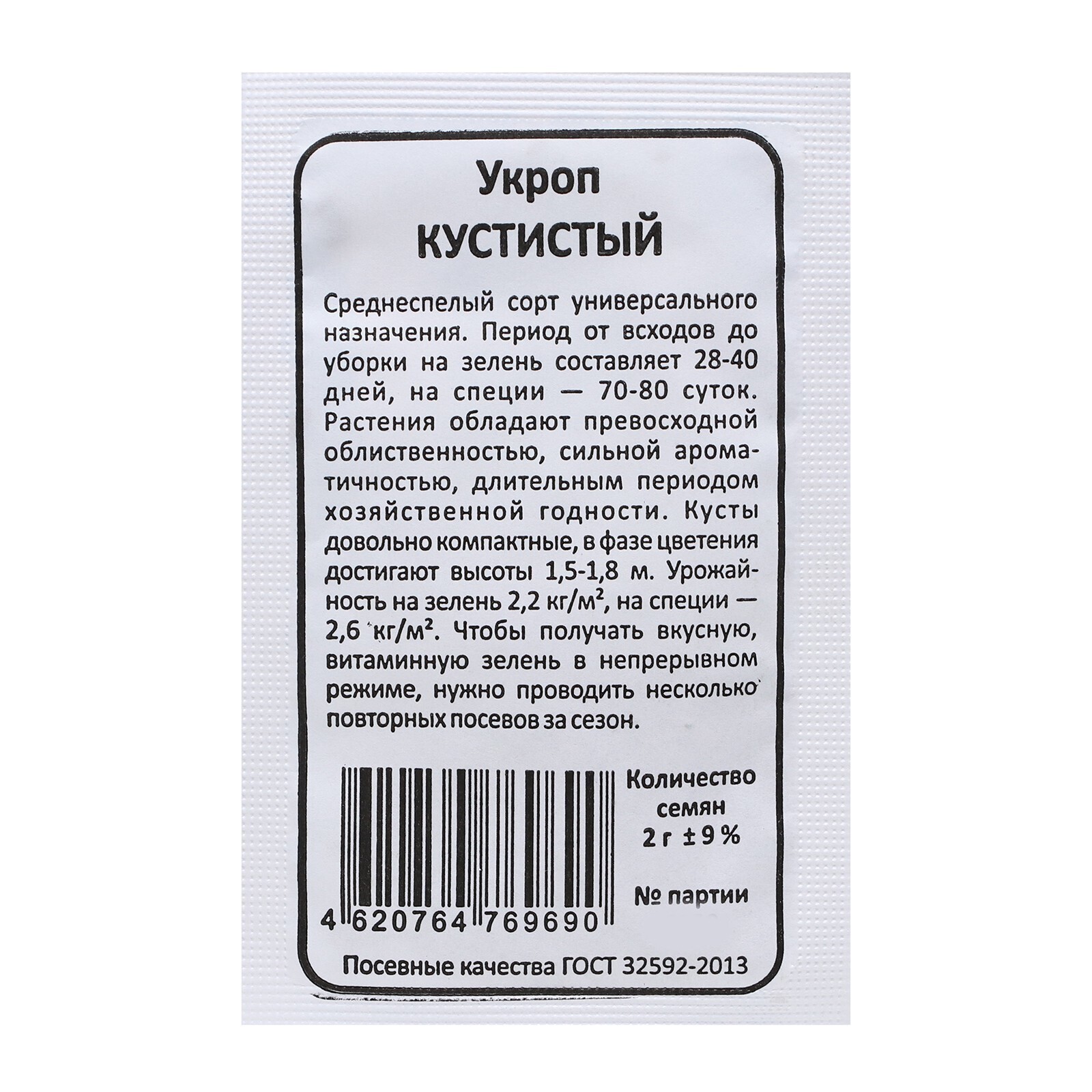 Семена Укроп "Кустистый", б/п, 2 г