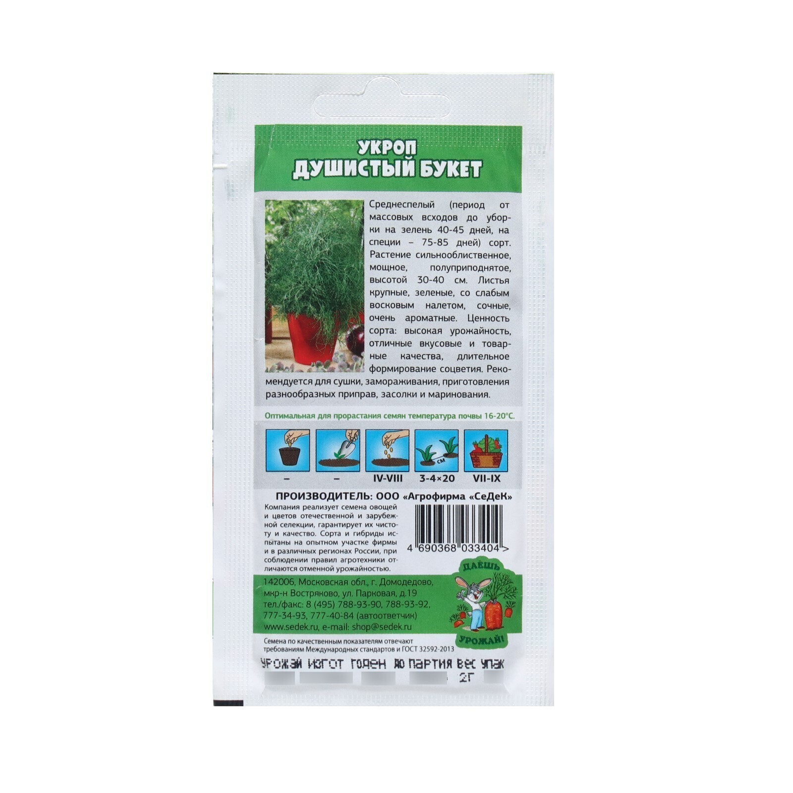 Среднеспелый сорт (период от массовых всходов до уборки на зелень 40-45 дней, на специи – 75-85 дней). Растение сильнооблиственное, мощное, полуприподнятое, высотой 30-40 см. Листья крупные, зелёные, со слабым восковым налетом, сочные, очень ароматные.Ценность сорта: высокая урожайность, отличные вкусовые и товарные качества, длительное формирование соцветия.Рекомендуется для сушки, замораживания, приготовления разнообразных приправ, засолки и маринования.