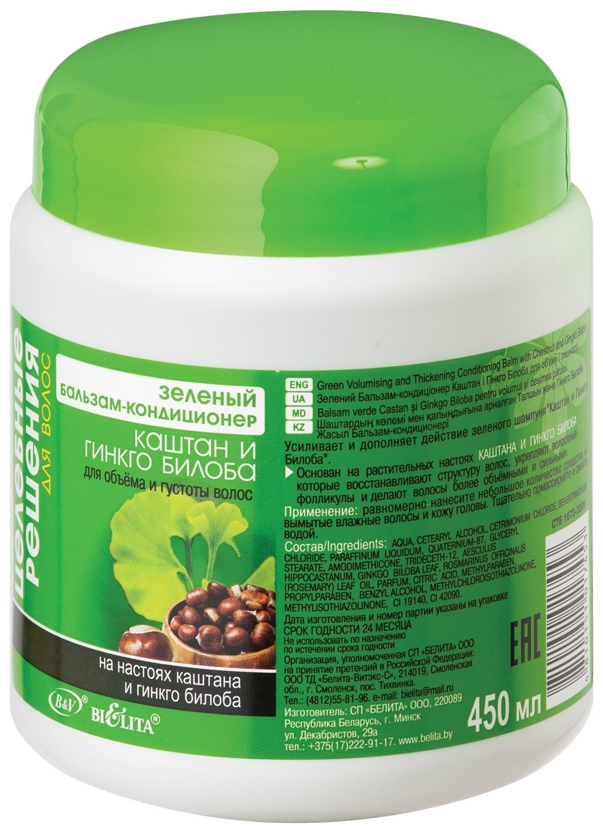 Зелёный бальзам-кондиционер для объема и густоты волос каштан и гинкго билоба великолепно ухаживает за тонкими и слабыми волосами. Основан на растительных настоях каштана и гинкго билоба, которые восстанавливают структуру волос и делают их более объемными и сильными.