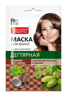 Дегтярная маска для волос с репейным маслом и хмелем для ускорения роста волос
