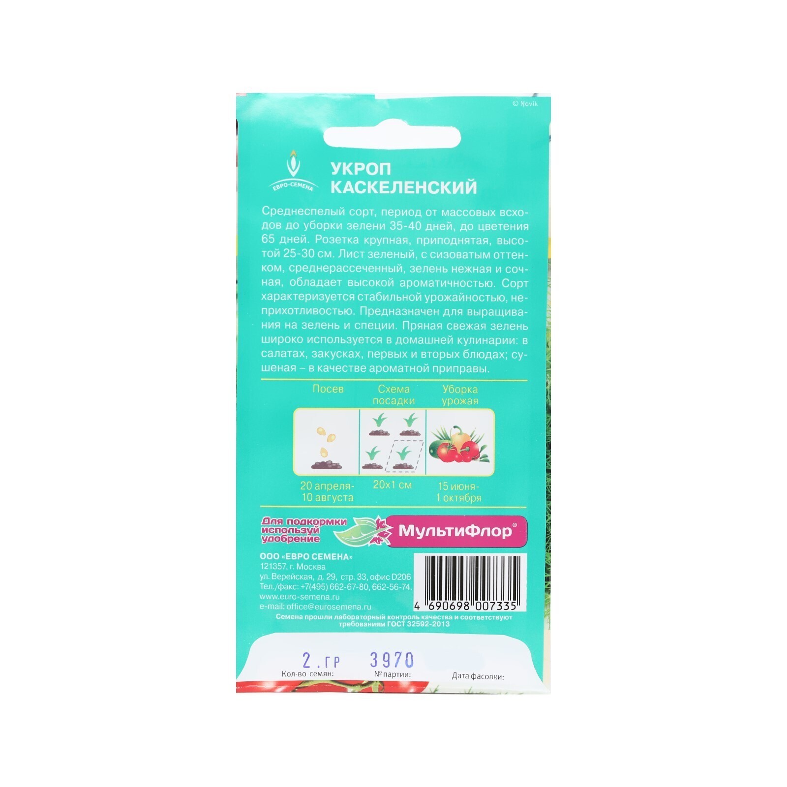 Семена Укроп Каскеленский среднеспелый, розетка листьев крупная, очень ароматный 2 г.