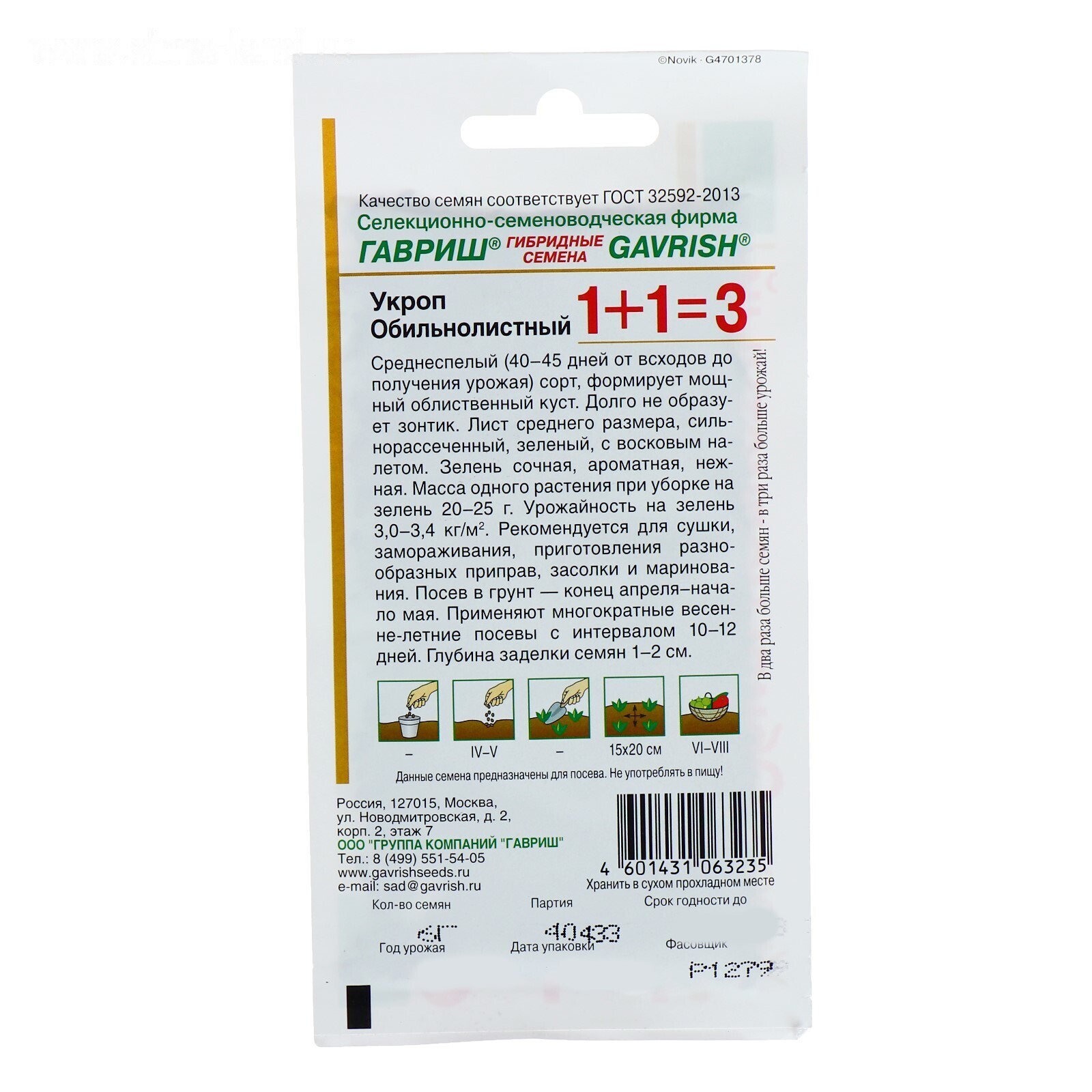 Семена Укроп 1+1 "Обильнолистный", 6,0 г