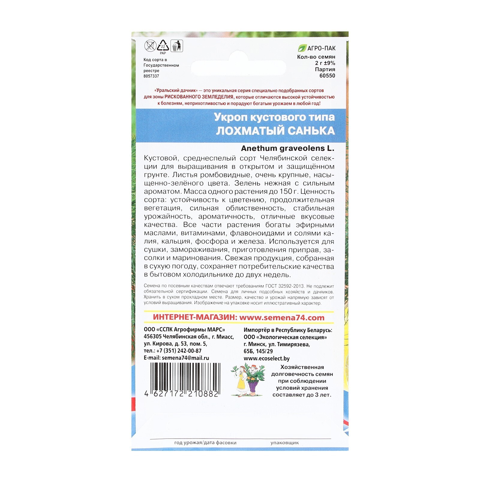 Семена Укроп "Лохматый Санька", кустового типа, 2 г