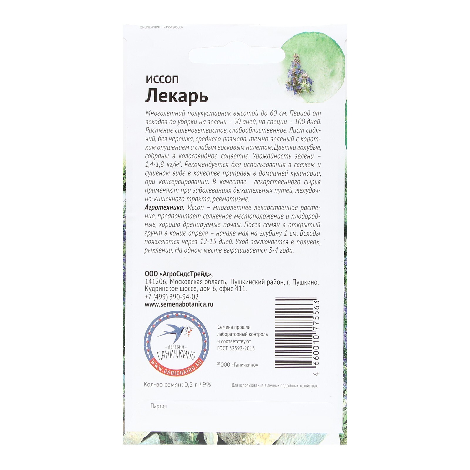 Семена Цветов Иссоп "Лекарь", 0,2 г