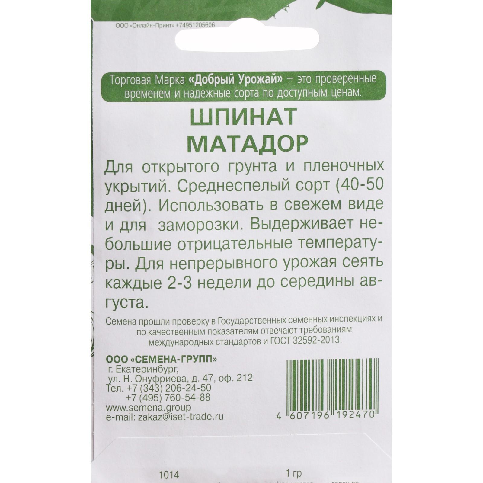 Семена Шпинат "Матадор", 1 г