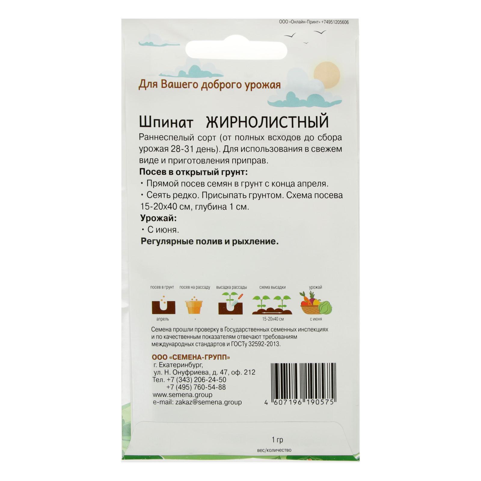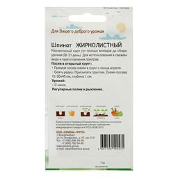 Раннеспелый (28-31 день от полных всходов до уборки урожая) сорт. Розетка листьев среднекомпактная, полуприподнятая. Листья зеленые, сочные, нежные, слабопузырчатые. Шпинат богат витаминами и минеральными веществами. В нем высокое содержание белка, благодаря чему он считается целебным овощным продуктом для детей. Сорт рекомендован для потребления в свежем виде и замораживания. Прекрасно подойдет для приготовления салатов, гарниров к мясным блюдам, омлета. Урожайность зеленой массы 3,3-3,5 кг/м2.
