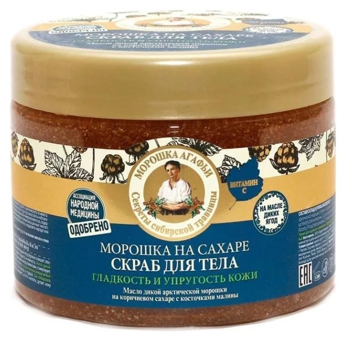 В морошке, помимо ценных витаминов и микроэлементов, содержится огромное количество антиоксидантов и жирных полиненасыщенных кислот, которые так полезны для молодости кожи и красоты волос, недаром в народе она получила название «молодильная ягода»! Скраб для тела Морошка на сахаре на основе масла диких ягод бережно очищает, возвращает коже упругость и эластичность, придает гладкость и нежность. Масло дикой арктической морошки, обогащенное антиоксидантами и микроэлементами, стимулирует обновление клеток, придавая коже молодость и тонус. Косточки малины и коричневый сахар эффективно отшелушивают, делают кожу ровной и гладкой. Сок сибирского барбариса содержит в большом количестве витамин С и А.Н.А.- кислоты, делает кожу более подтянутой и упругой.