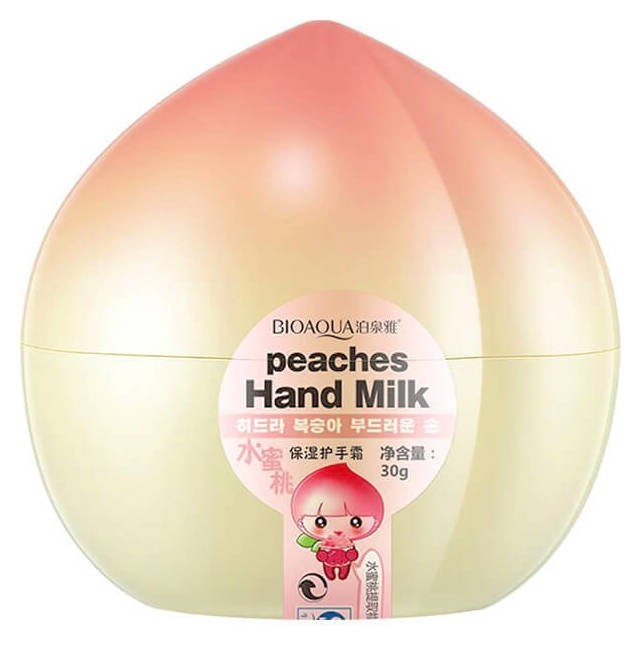 Увлажняющий крем для рук Bioaqua с ароматом персика содержит экстракт этого прекрасного фрукта, а также вытяжку из абрикоса. В составе средства есть ликопен-антиоксидант, противостоящий атакам свободных радикалов и замедляющий старение клеток. Крем благотворно влияет на кожу рук и ногти, избавляет от чрезмерной сухости, шероховатости и заусениц. Экстракт персика, на основе которого создано средство, обладает смягчающим и тонизирующим эффектом. Он убирает покраснения, защищает сосуды от ломкости. Кожа, которая страдает от стресса, нуждается в питательных веществах, которым насыщен крем Bioaqua. Увлажняющий крем для рук Bioaqua с ароматом персика соединяет в себе древнюю медицину и современные технологии. Противопоказаний в данном средстве нет, по исключению только индивидуальной непереносимости, которая проявляется в виде зуда, покраснения и сыпи.