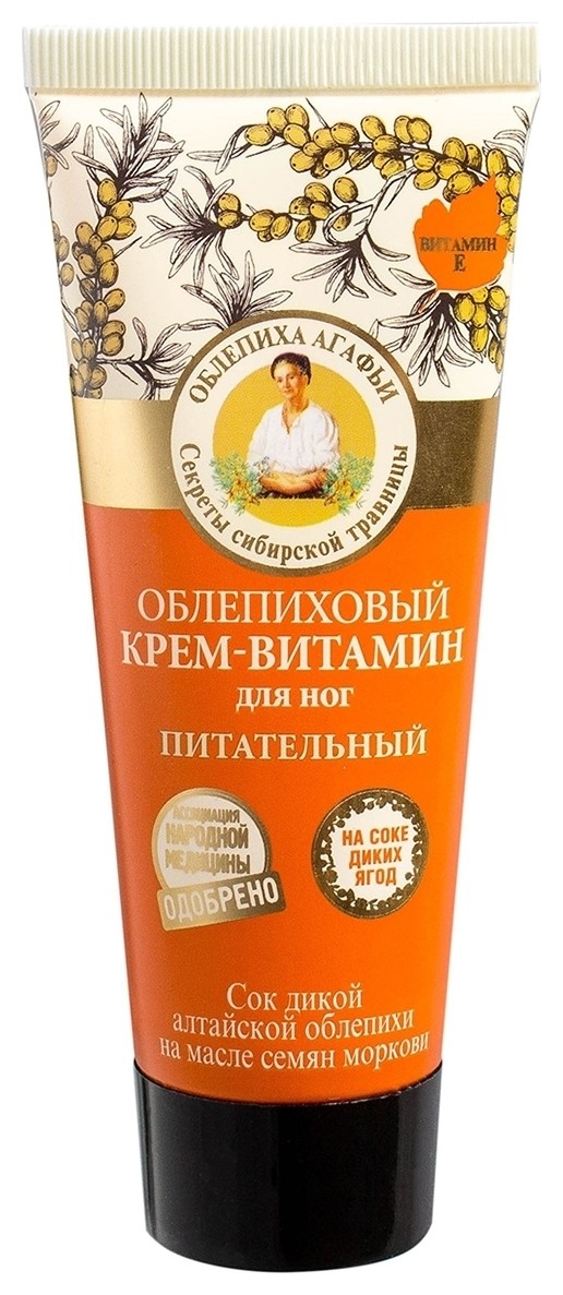 Облепиховый крем-витамин для ног на основе сока диких ягод насыщает кожу витаминами, смягчает, надолго сохраняя ощущение комфорта. Сок дикой алтайской облепихи интенсивно питает кожу стоп. Масло семян моркови глубоко увлажняет благодаря содержащимся в нем витаминам В1, В2, С и провитамину А. Органический экстракт лепестков Календулы способствует регенерации клеток кожи, обладает противосполительным и защитным действием.