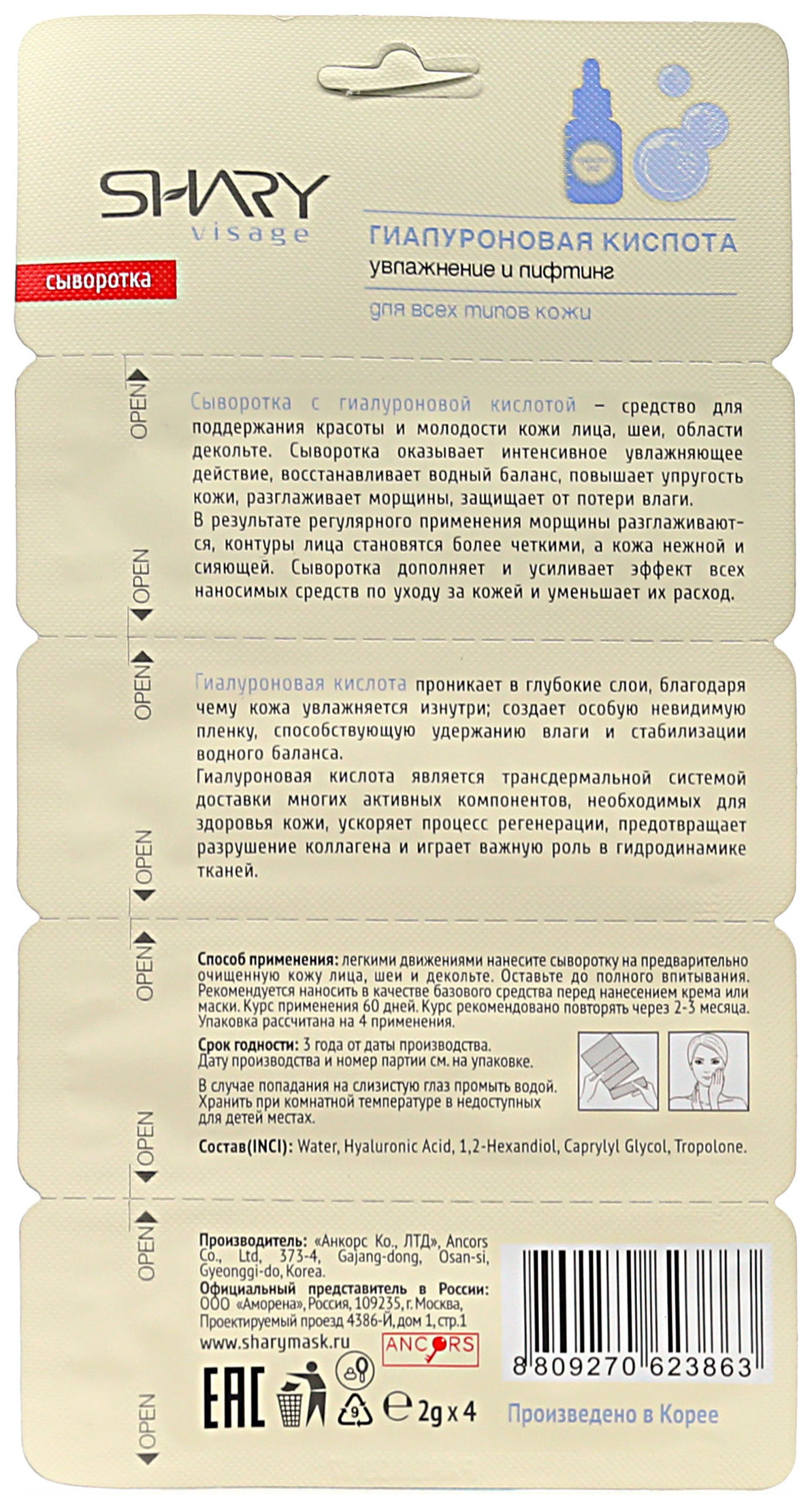 Сыворотка с гиалуроновой кислотой - средство для поддержания красоты и молодости кожи лица, шеи, области декольте. Сыворотка оказывает интенсивное увлажняющее действие, восстанавливает водный баланс, повышает упругость кожи, разглаживает морщины, защищает от потери влаги. В результате регулярного применения морщины разглаживаются, контуры лица становятся более четкими, а кожа нежной и сияющей.