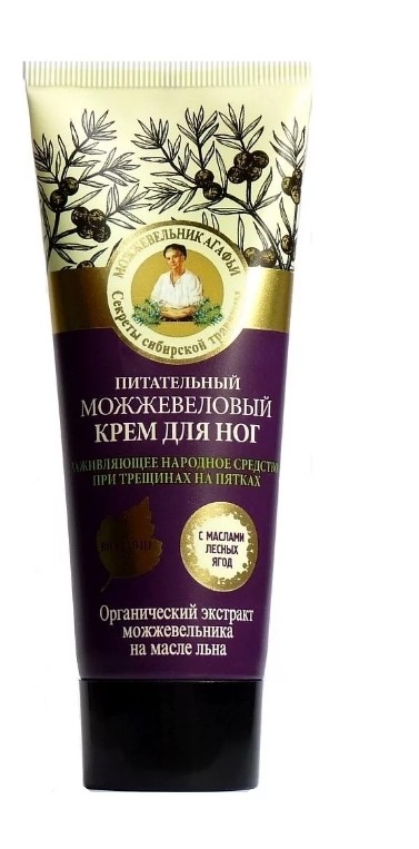 Натуральные косметические средства от известной ТМ «Рецепты бабушки Агафьи» пользуются большой популярностью, ведь они разработаны на основе древних народных рецептур и включают натуральные ингредиенты. Питательный крем для ног с соком ягод даурского дикого можжевельника эффективно смягчает и питает кожу ступней, препятствуя ее огрубелости. Средство обладает выраженным противомикробным действием, предупреждает воспаления, восстанавливает кожный покров, активизируя его естественные защитные свойства.