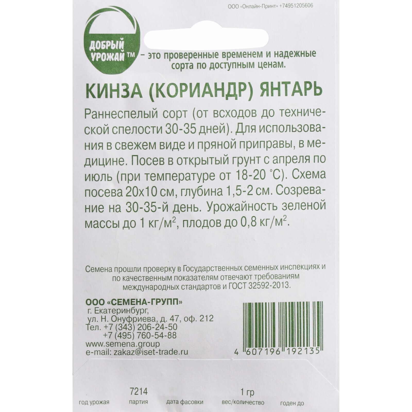 Семена Кинза/Кориандр "Янтарь", 1 г