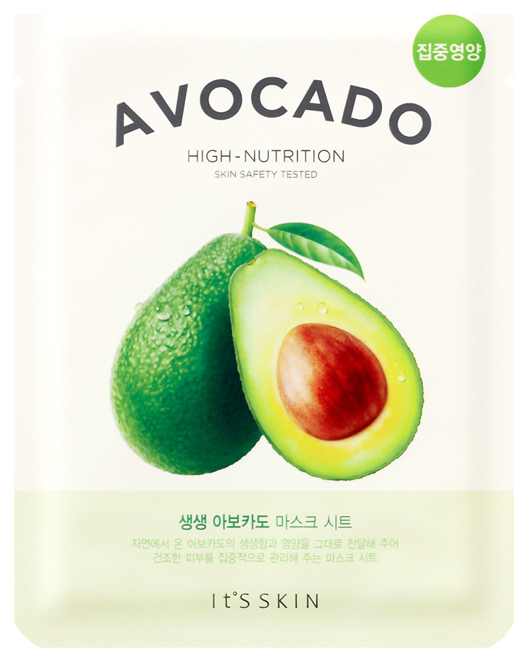 Тканевая маска с маслом авокадо повышает эластичность кожи. Устраняет симптомы обезвоженности и сухости, способствует быстрому заживлению микротрещин. Смягчает, а также замедляет процесс старения кожи.