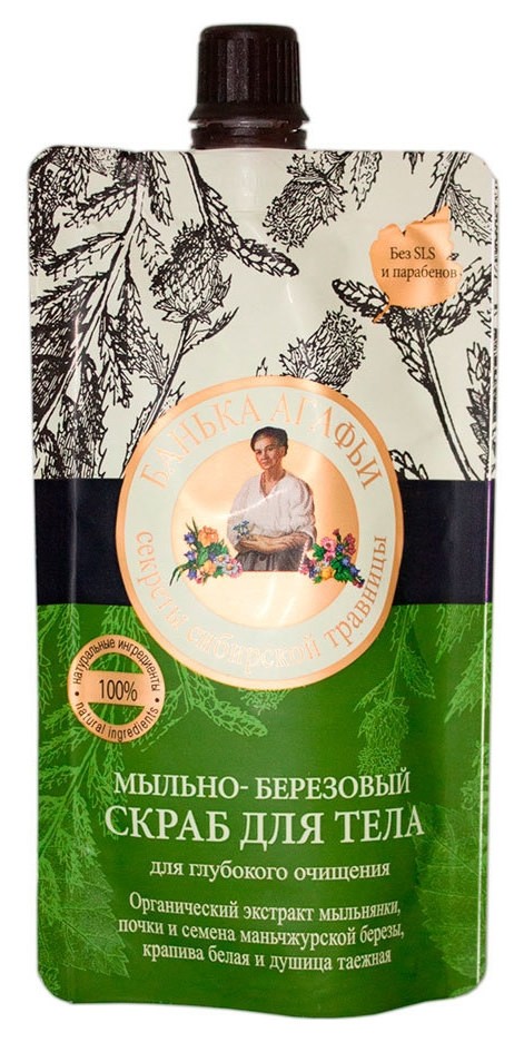 Скраб из трав, известных в Сибири своими моющими свойствами, создан для глубокого, но бережного очищения. Натуральные компоненты сохраняют естественный баланс кожи, не вызывая чувства стянутости. Почки и семена маньчжурской березы удаляют ороговевший слой кожи, оказывают активное регенерирующее действие. Крапива белая тонизирует и повышает защитные свойства кожи. Душица таежная содержит эфирные масла, витамин С и флавоноиды, успокаивает кожу, делает её гладкой и мягкой. Органический экстракт мыльнянки - старинное средство для глубокого очищения кожи. Содержит 100% натуральные ингредиенты.