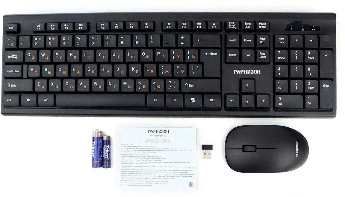 • Комплект поставки USB-приемник, батарейки (2 шт), документация, мышь, клавиатура