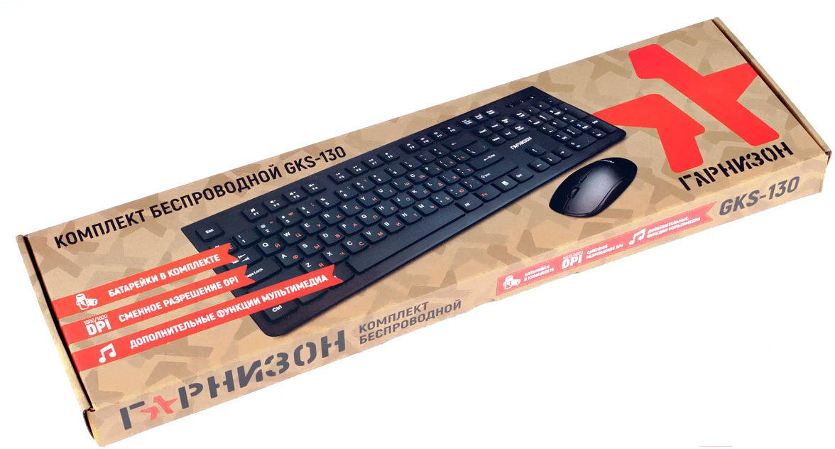 - Комплект поставки USB-приемник, батарейки, документация, мышь, клавиатура