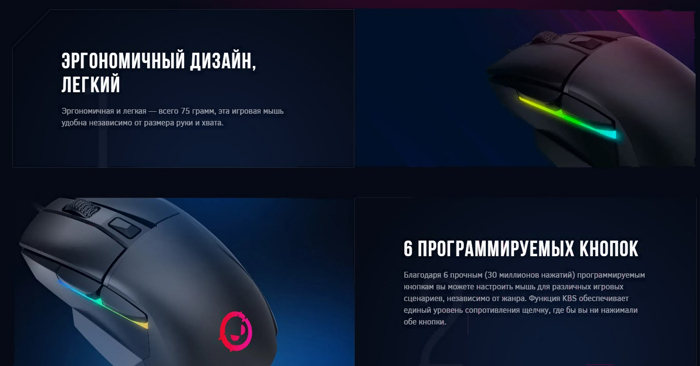 • Максимальное разрешение сенсора мыши 12000 dpi