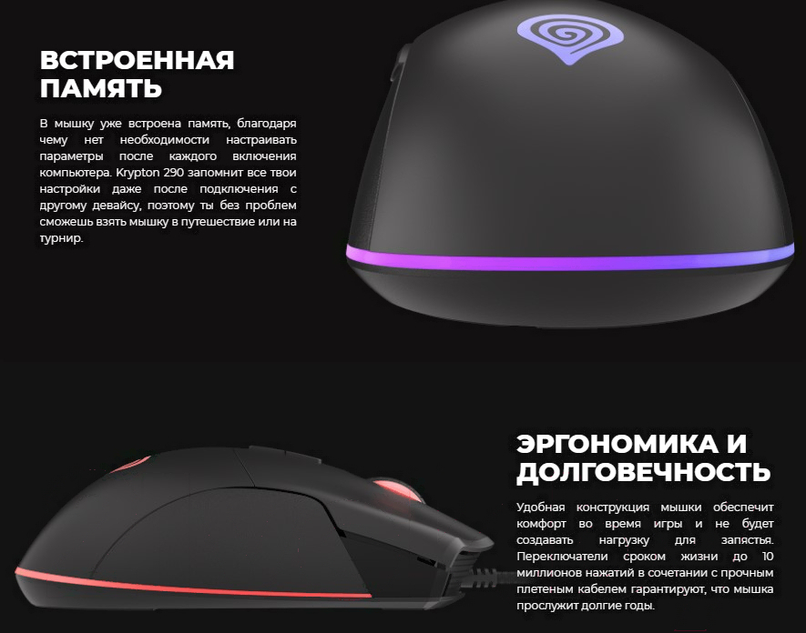 • Особенности мыши оплетка кабеля, встроенная память, смена подсветки